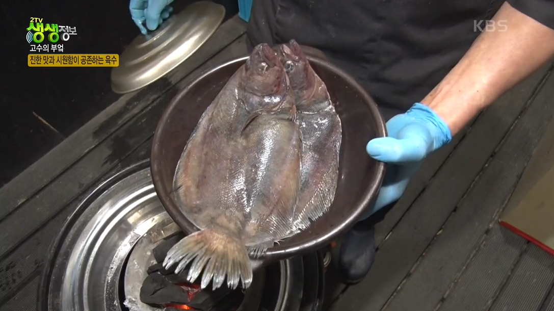 만두전골 육수의 시원함을 위해 가자미를 사용하여 진한맛과 시원함이 공존하는 육수가 탄생되는 이 곳.